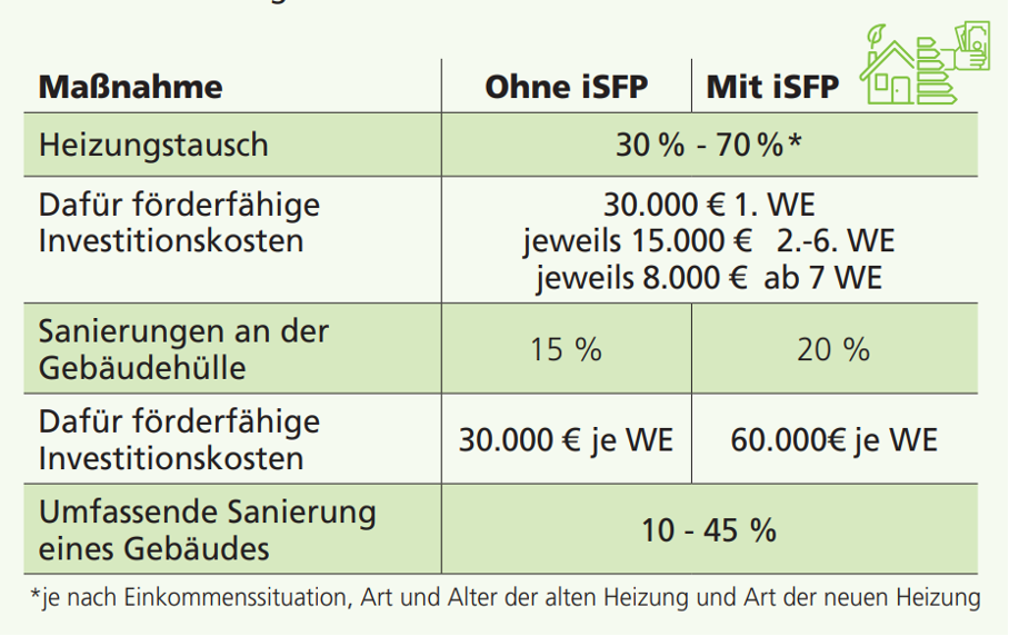 Der Eigenanteil der Beratung beträgt bei einem 1-2 Familienhaus 325 €. Welche Maßnahmen werden gefördert?